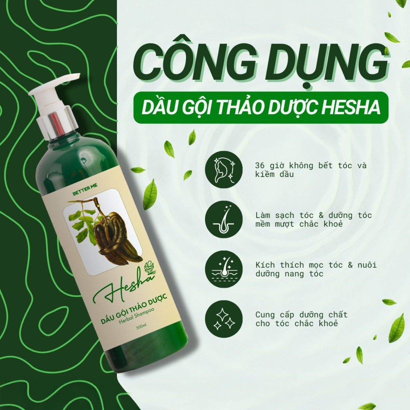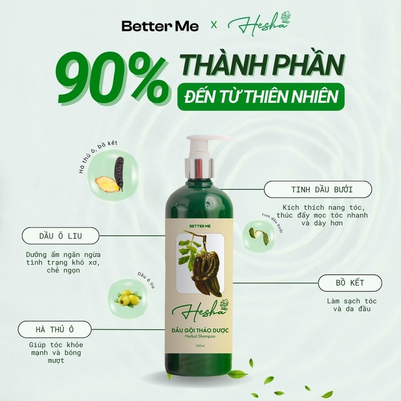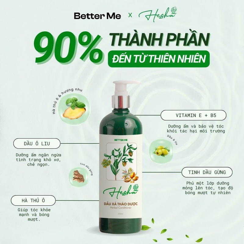 👉 Gội xả Hesha chứa các thành phần từ thiên nhiên có tác dụng làm dịu da đầu và giảm gàu, tuy nhiên nếu bạn có gàu nặng, có thể cần thêm sản phẩm đặc trị.
